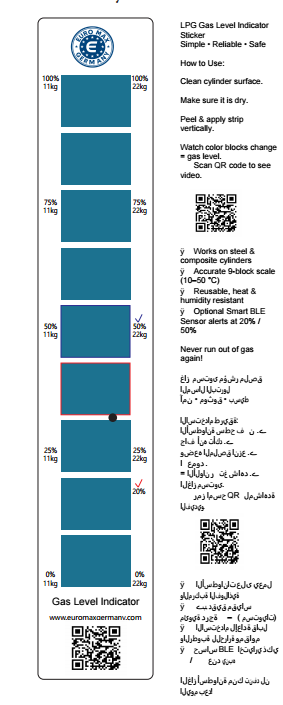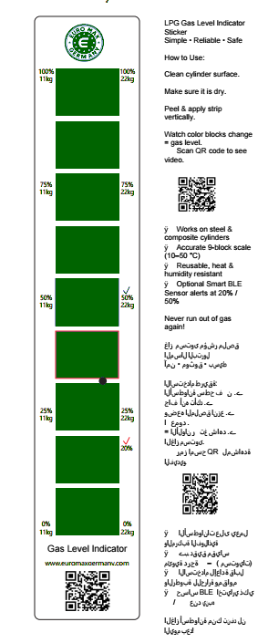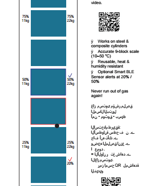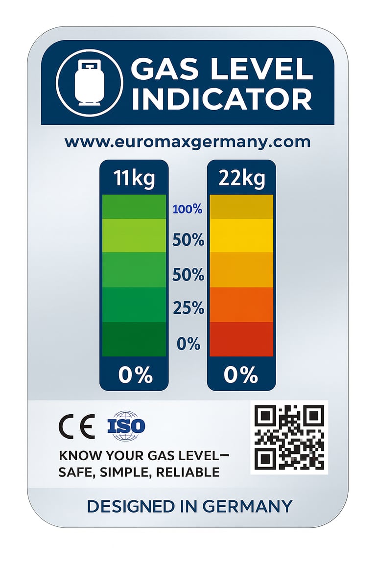 Our LPG Gas Level Indicator Sticker gives you a clear visual signal of how much gas is left in your cylinder — anytime, day or night.